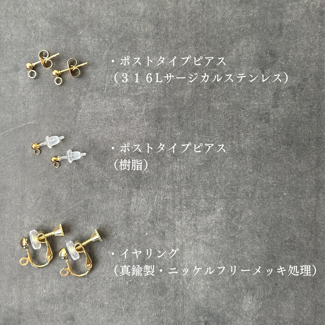 ・イヤリング(真鍮製・ニッケルフリーメッキ処理)痛み軽減のシリコンカバー付き