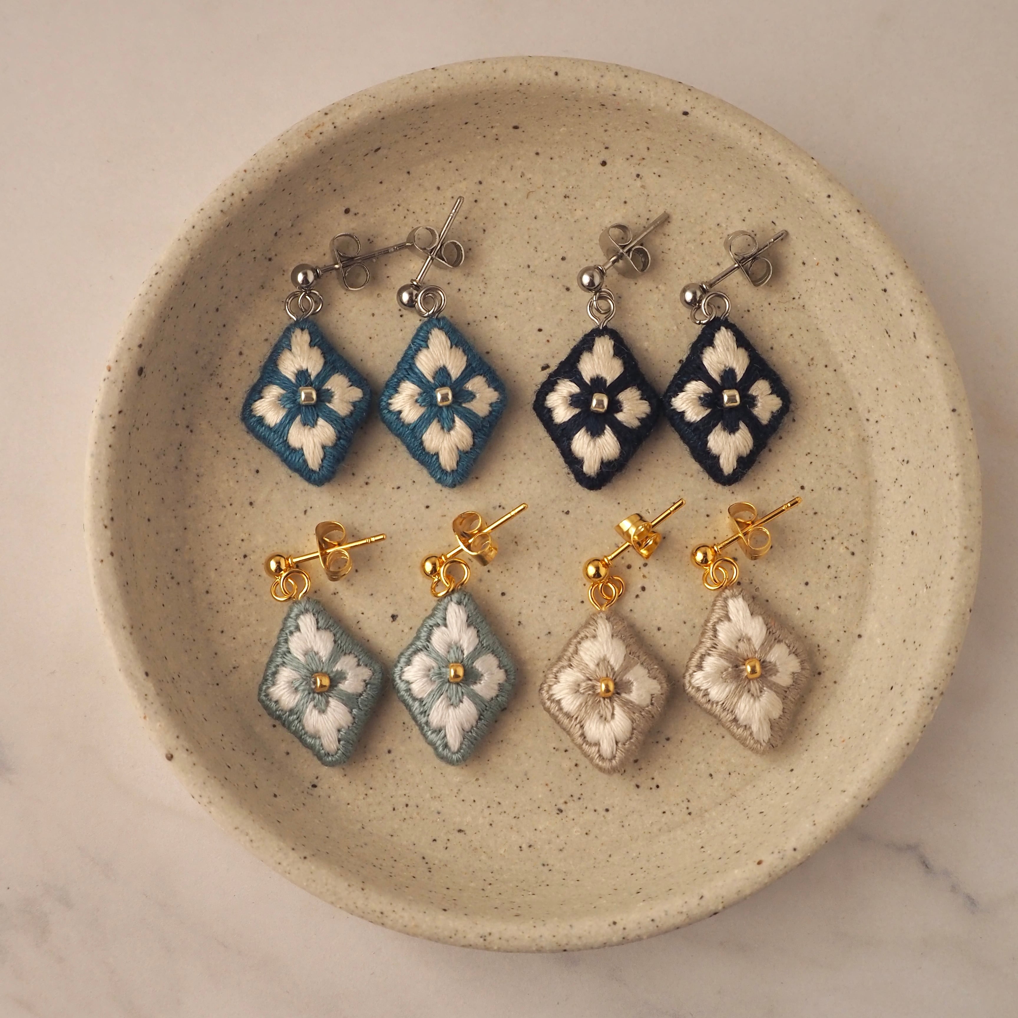 【冬の新色 / 4色】バリ島の伝統柄 刺繍ピアス