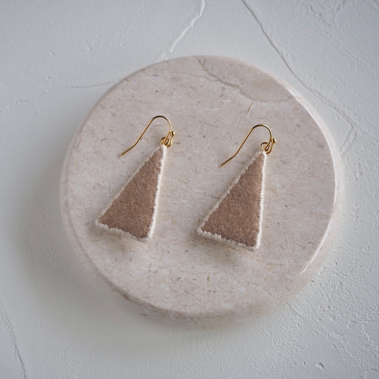 1本取りの糸で丁寧に描くように施した刺繍は、厚みが少なくすっきりとした印象に。セミマットな艶が耳元でやわらかく光を受け、シンプルな装いに品よく寄り添います。